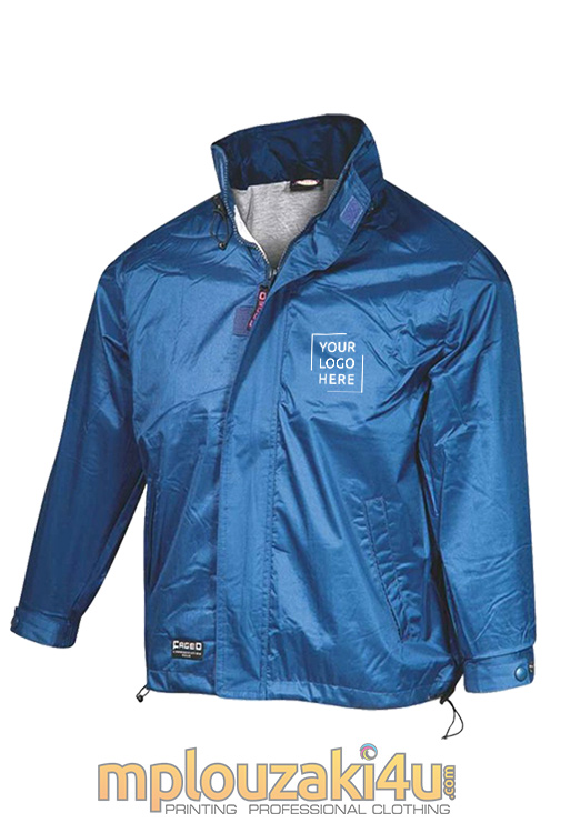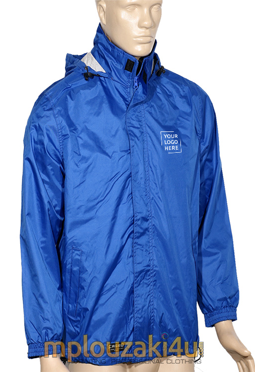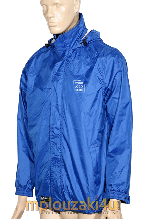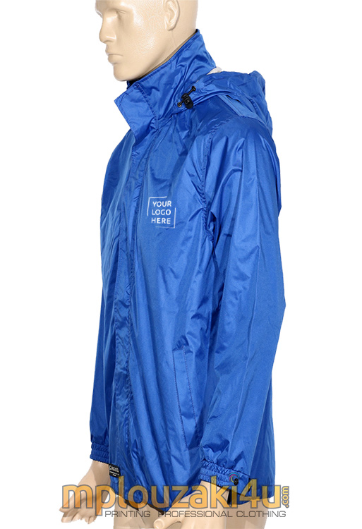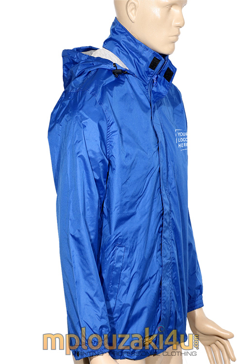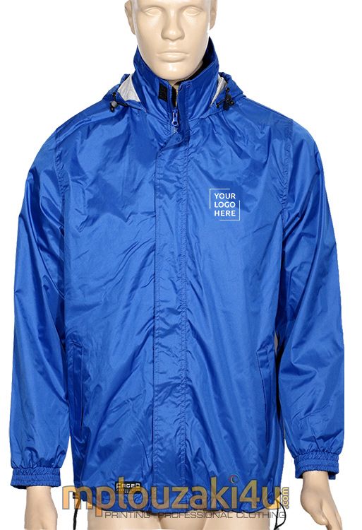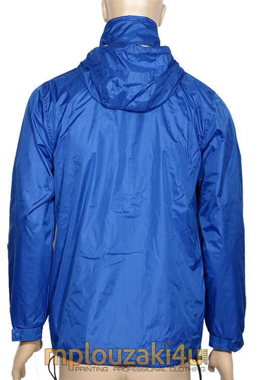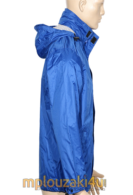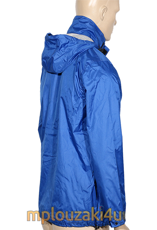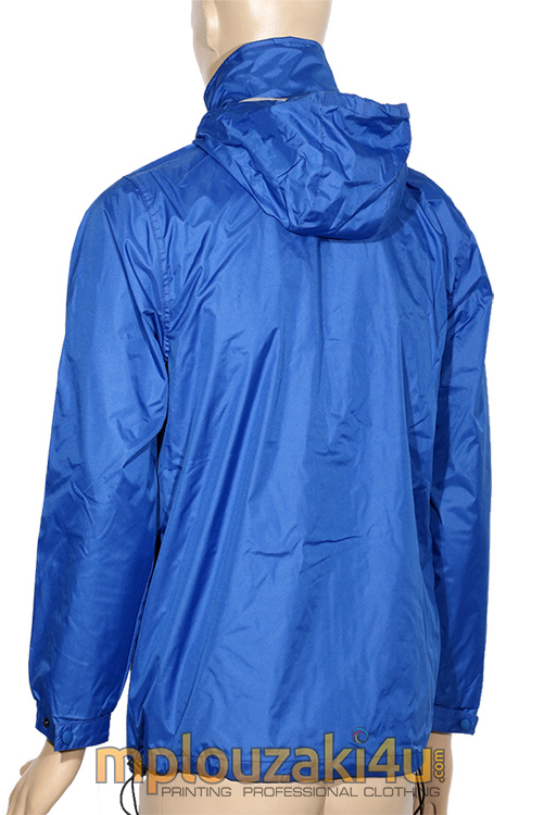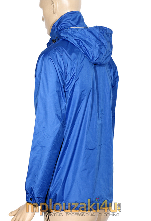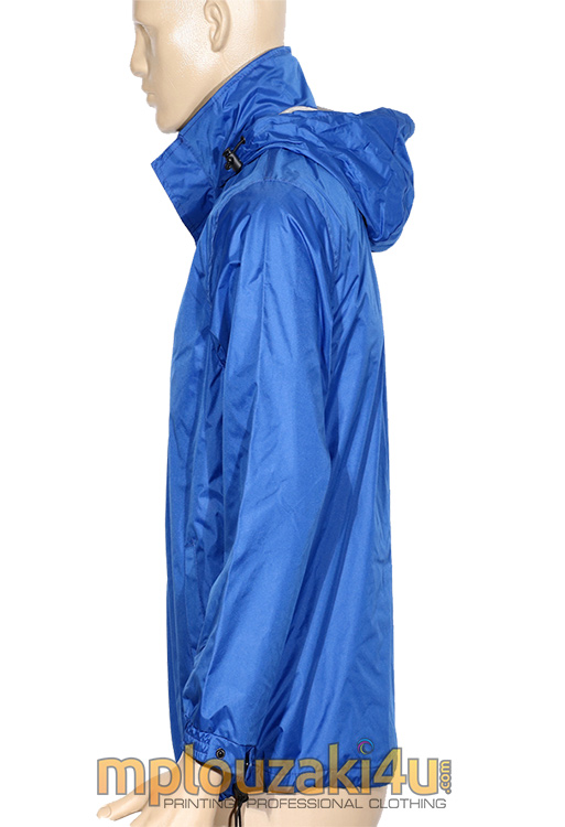 Περιγραφή: Μπουφάν αντιανεμικό & αδιάβροχο με κουκούλα σε θήκη στο γιακά .
