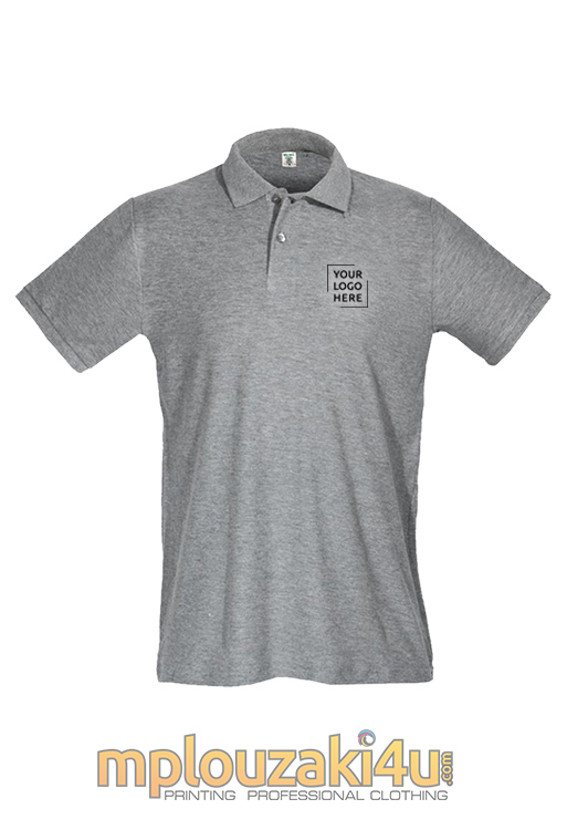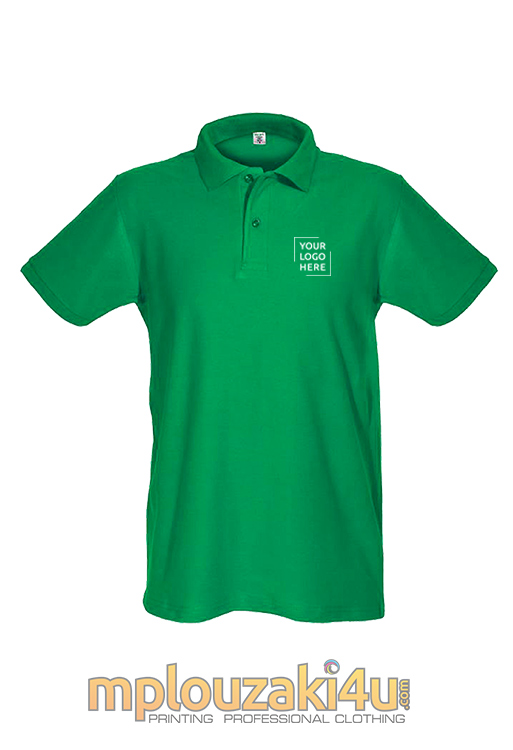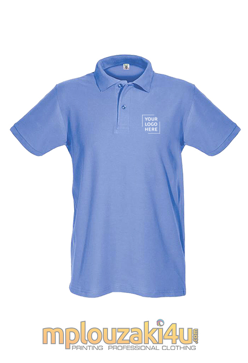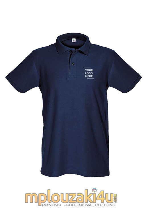 Ανδρικό κοντομάνικο μπλουζάκι τύπου POLO με δύο κουμπιά , λάστιχο στον γιακά και στα μανίκια και με πλαϊνές ραφές .
