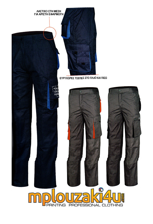 Παντελόνι Εργασίας Fageo εργασίας με άνετες τσέπες, με ενίσχυση στο γόνατο και λάστιχο στη μέση.